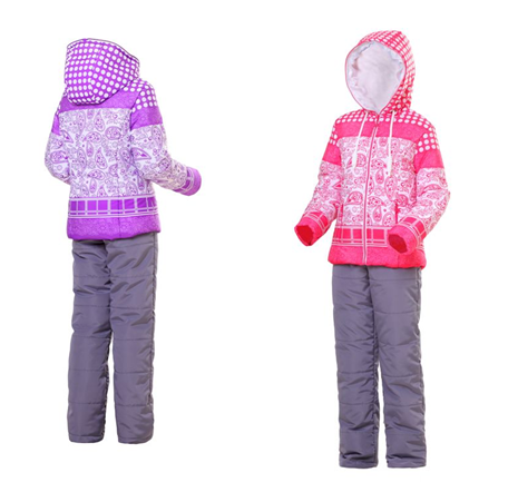 брюки: графит, куртки: бело-розовый, бело-фиолетовый, розово-фиолетовый, бело-василек